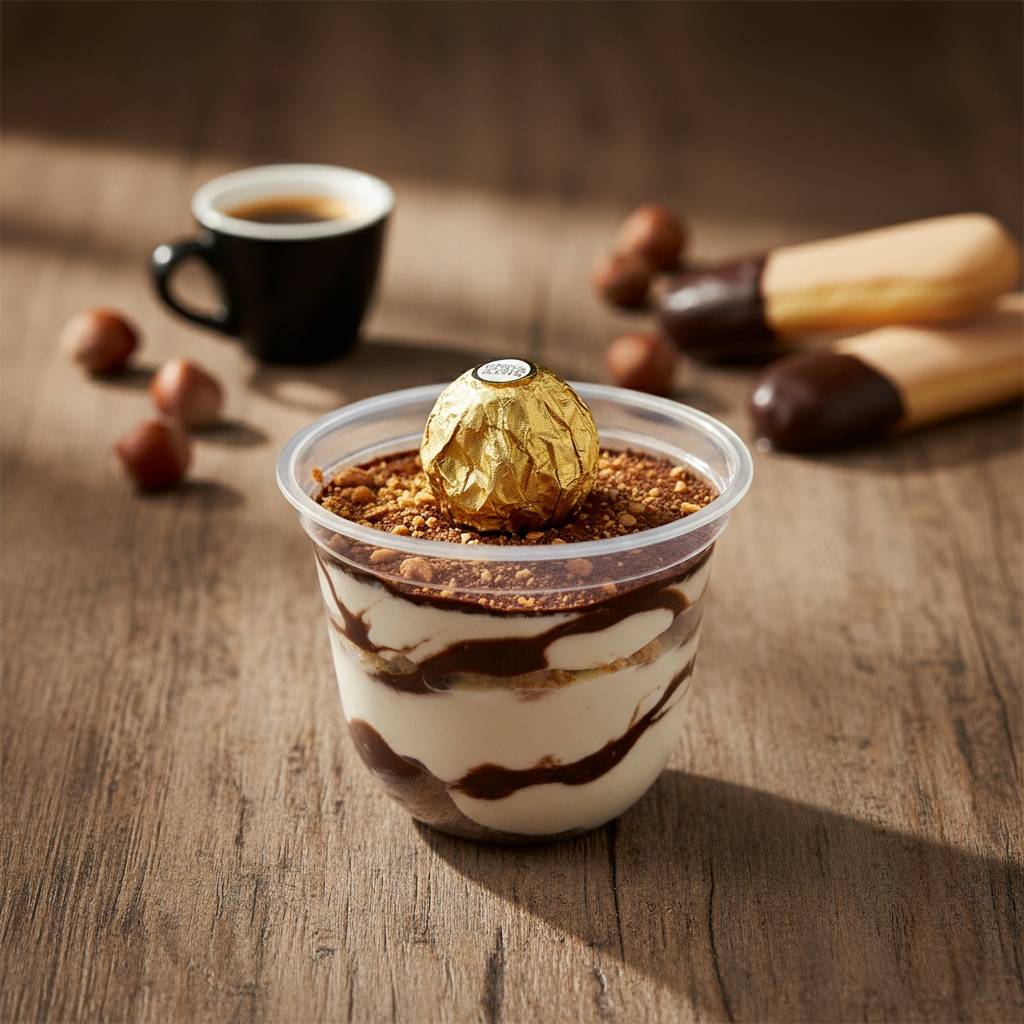 成分:雞蛋,糖,馬斯卡邦起司,法國動物鮮奶油,手指餅乾,牛奶,榛果可可粉,巧克力,杏仁脆,金莎,葡萄籽油